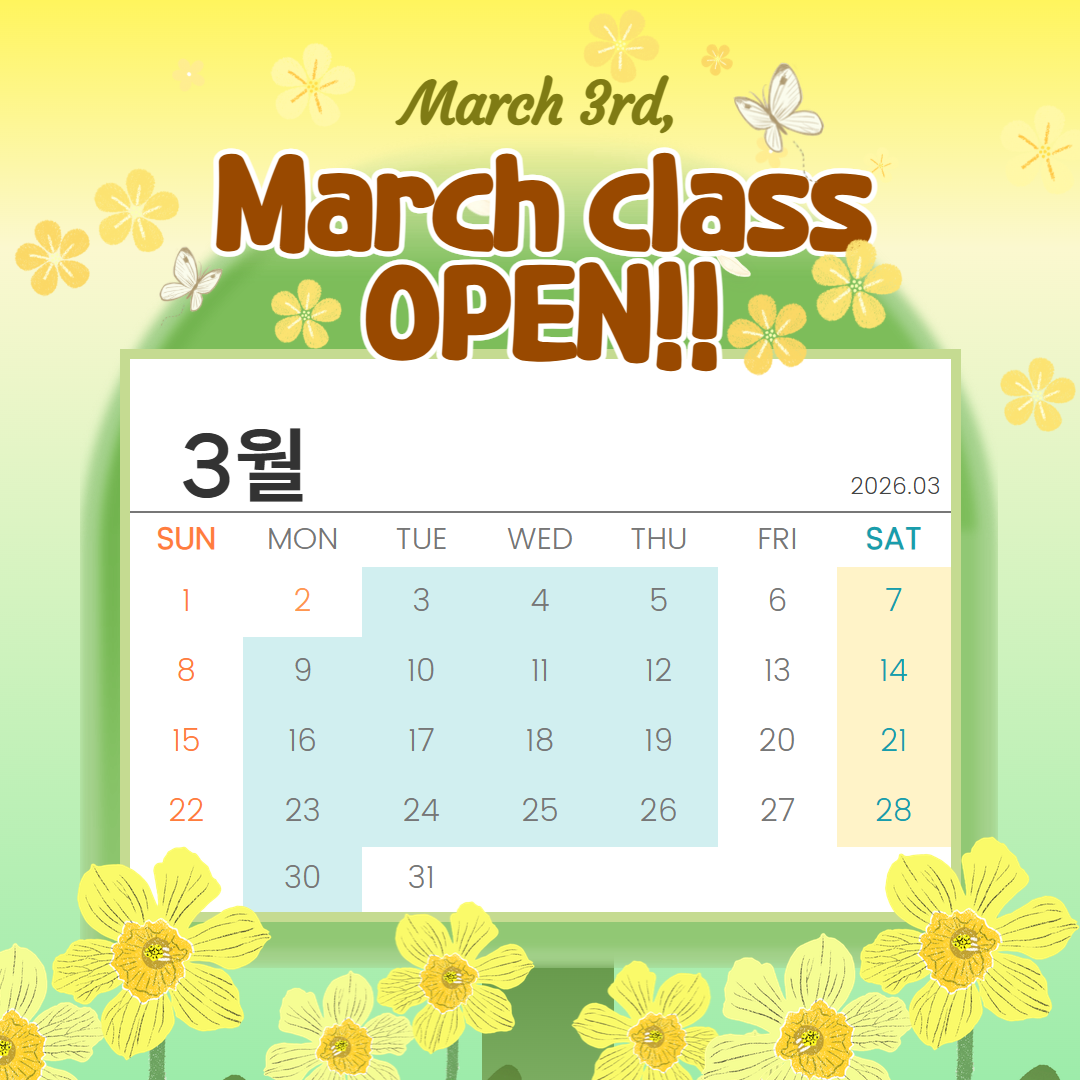 매월 개강. 동일한 레벨의 학생들과 함께 공부하는 수업